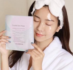 Đây là bảo bối giành cho các cô nàng bận rộn, khi bạn có thể vừa làm việc vừa đắp mặt nạ mà không lo miếng mặt nạ rơi ra hay bị chảy tinh chất ra ngoài. Mặt nạ Crystal Skin Mask rất phù hợp với các cô nàng da nhờn, da hỗn hợp có khả năng làm sáng da, se khít lỗ chân lông, hiệu ứng glow nhẹ trên da,….Celderma – nhãn hàng mặt nạ do chị đẹp Song Ji Hyo làm đại diện nằm trong “Top 10 thương hiệu chăm sóc sắc đẹp cho người tiêu dùng ở Hàn Quốc”.
