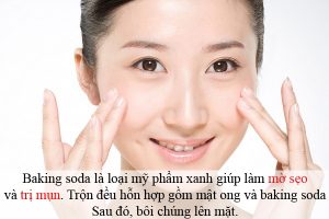 Công thức từ baking soda là loại mỹ phẩm xanh tuyệt vời giúp làm mờ sẹo và mụn. Trộn đều hỗn hợp gồm mật ong và baking soda. Sau đó, bôi chúng lên mặt. Để trong 10 phút và rửa sạch bằng nước.