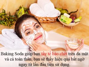 Đây là loại mỹ phẩm xanh tuyệt vời giúp bạn tẩy tế bào chết trên da mặt và cả toàn thân. Hỗn hợp baking soda sẽ giúp làn da của bạn mềm mại và mịn màng như em bé. Với phương pháp này, bạn trộn 3 thìa Baking soda vào cốc nước ấm. Dùng hỗn hợp này để rửa nhẹ mặt, sau đó lấy bàn chải chà xát nhẹ nhàng các khu vực da khô. Bạn sẽ bất ngờ khi làn da trở nên mềm mại và mịn màng hơn rất nhiều. Điều tuyệt vời là nó có thể mang lại hiệu quả ngay lần sử dụng đầu tiên.