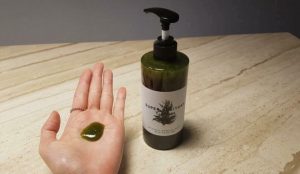 Thiết kế đơn giản hình trụ tròn có màu xanh rau của mát mắt có thể nhìn thấy qua thân chai màu trong. Thiết kế tách rời vòi pumb, vòi pumb được để riêng trong một chiếc túi nhỏ. Khi mở ra sử dụng, các nàng mở nắp chai và lắp vòi pumb để khi sử dụng chỉ cần nhấn vòi là dễ dàng lấy được sản phẩm ra.