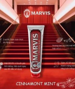 - Marvis Cinnamon Mint (Đỏ): hương bạc hà và quế cay cay nồng nồng, chuyên khử mùi sau khi ăn những thực phẩm có mùi nặng như mắm, ốc, hải sản …