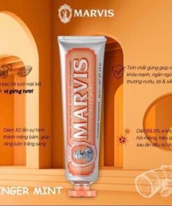 - Marvis Ginger Mint (Cam): vẫn là hương bạc hà truyền thống kết hợp với chiết xuất gừng tươi. Bảo vệ nứu lợi rất tốt