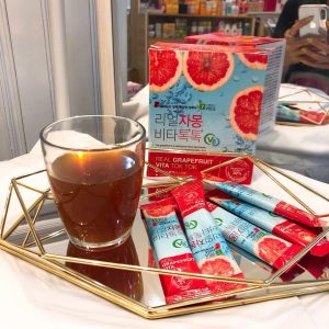 - Nước ép bưởi Real Grapefruit Vita Tok Tok là nước ép bưởi và mật ong ( 국내산) chứa rất nhiều vitamin C. Bổ sung 8 loại vitamin rất tốt cho sức khỏe, giải khát cho cơ thể khỏi ngày hè nắng nóng.